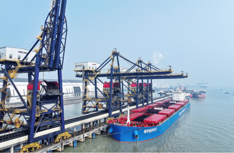 近日,长江深国际靖江港码头,停靠的“国家能源601”海轮完成6万吨煤炭过驳作业。智能在线监测显示,近20小时的高效作业中,煤炭接卸损耗量接近于零,全程无粉尘溢出。至此,深国际靖江港打造的“绿色近零碳”港口,在运营一周年之际取得重大成效。