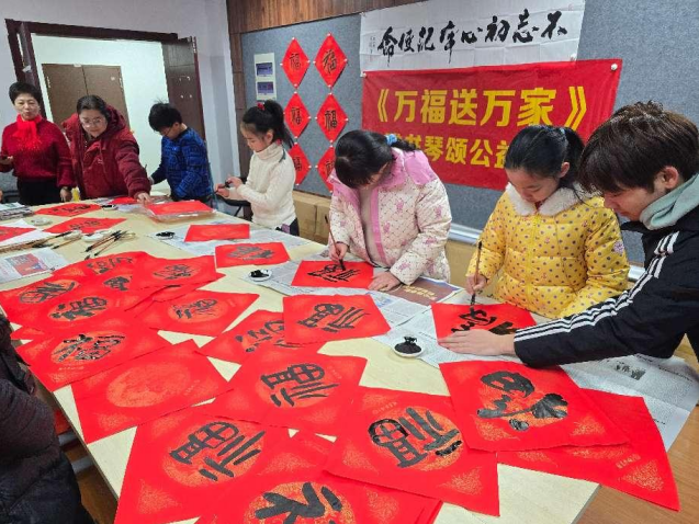 活动现场,南京中医药大学第二附属医院外科第三党支部、江苏银行河西支行、正中脊康复医学中心、牙博士口腔河西店等驻区单位为居民送上了祝福,雅书琴颂的书法老师们带领辖区青少年现场书写“福”字和春联,并将“福字和春联送给了现场的居民朋友。