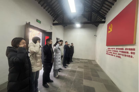 在讲解员的带领下,参加活动的党员步入渡江战役总前委旧址。一张张珍贵的黑白照片、一件件散发历史气息的器物,诉说着当年革命先辈们运筹帷幄、英勇奋斗的故事。在革命先辈们工作生活过的地方,参加活动的全体党员面向党旗重温入党誓词,重忆入党初心,进一步坚定理想信念。