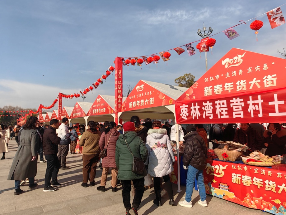 岁末温情迎新春,人间烟火年味浓。1月18日,仪征2025“宜消费 真实惠”新春年货大街活动热闹开启。扬子公园新时代文明实践中心广场上,各类年货琳琅满目,腊肉、蔬菜、水果……名优农特产品应有尽有、琳琅满目。汽车、房地产、家装、家电、家居等领域品牌也参与其中,共同勾勒出一幅年味十足的“赶年集”风情画。