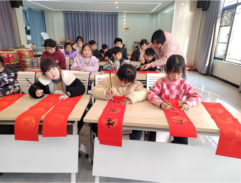 书写春联环节将现场气氛推向高潮。活动邀请了党外知识分子现场教小朋友们书写春联,孩子们纷纷拿起毛笔,蘸墨挥毫,一笔一画间,书写着对新年的美好期许。