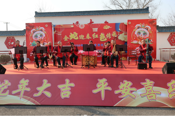 活动开场,村里的器乐爱好者们组成乐队闪亮登场,奏响经典曲目《金蛇狂舞》和《花好月圆》。欢快的节奏、悠扬的旋律在广场上空飘荡,瞬间点燃现场气氛,熟悉的音符唤起村民们对传统节日的美好回忆,大家沉浸在喜庆的节日氛围中,为活动暖场。