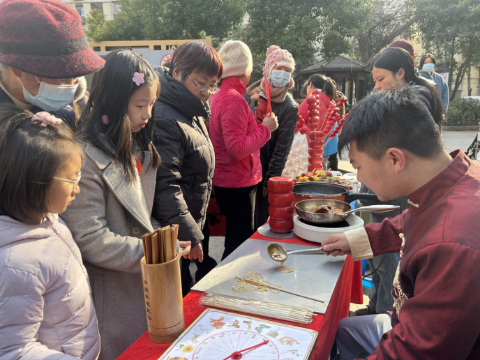 除了精彩的书法展示外,活动当天还精心设置了多个传统文化特色的摊位,吸引了众多居民的积极参与。非遗糖画、糖葫芦等传统小吃摊位前人头攒动,居民们在品尝这些美味佳肴的同时,也深刻感受到了传统文化的独特魅力。投壶游戏区更是热闹非凡,居民们竞相参与挑战,现场欢声笑语不断。在游戏互动中,邻里之间的距离被悄然拉近,温暖的氛围弥漫在活动现场,充分展现了传统文化与社区生活的深度融合,营造出浓厚的文化氛围和和谐的社区环境。