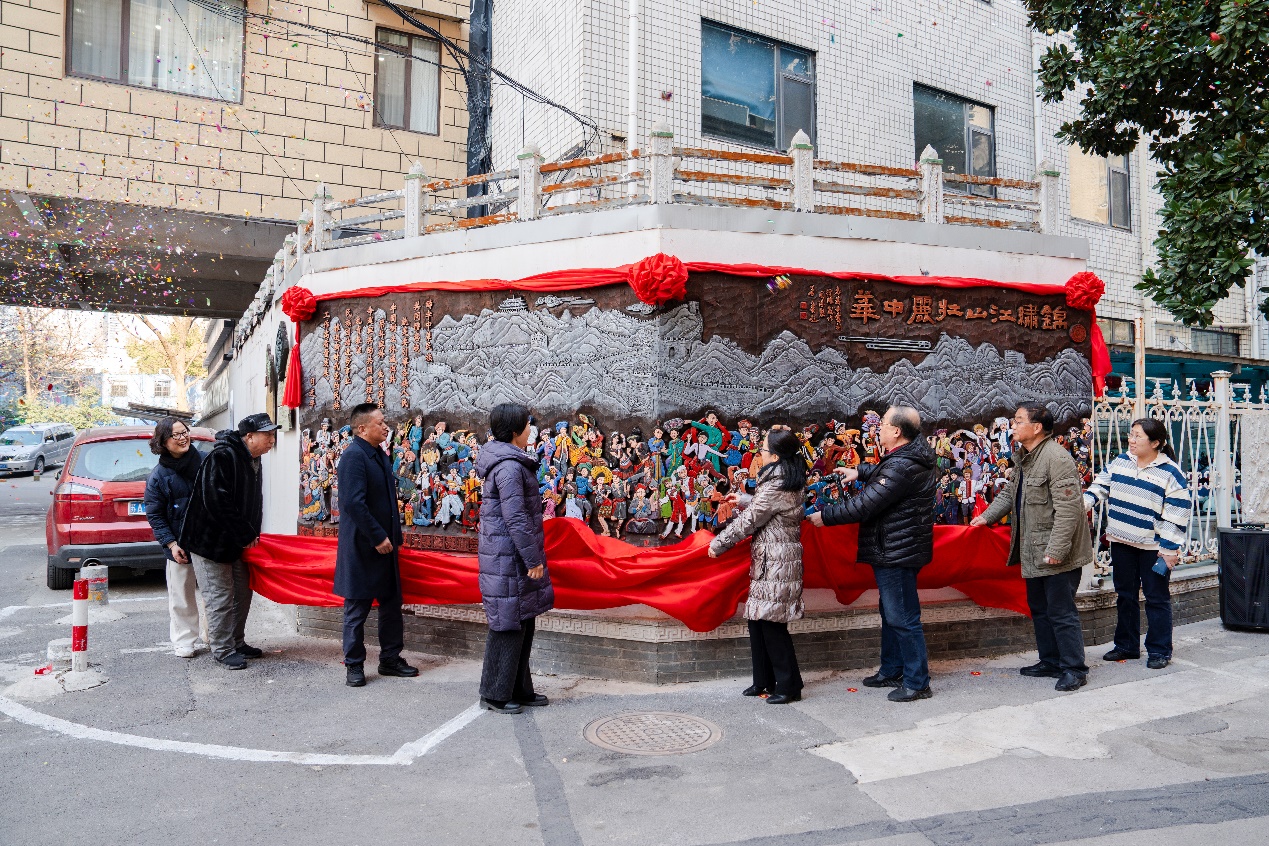 多年来,朝天宫街道各社区一直致力于中华优秀传统文化的传承发展,把民族文化、红色文化、地名文化、谚语文化等内容与现代书刻、雕刻、版刻技术结合,形成街道特有的“书刻文化”。以“书刻”为载体,打造了牙檀巷铸牢中华民族共同体意识示范街、铸牢中华民族共同体意识展示中心、运渎诗词长廊等。2024年,街道深入推进“文化浸润项目”,打造了铸牢中华民族共同体意识《锦绣江山,壮丽中华》浮雕作品。在众领导的共同见证下,铸牢中华民族共同体意识《锦绣江山,壮丽中华》大型浮雕揭幕。