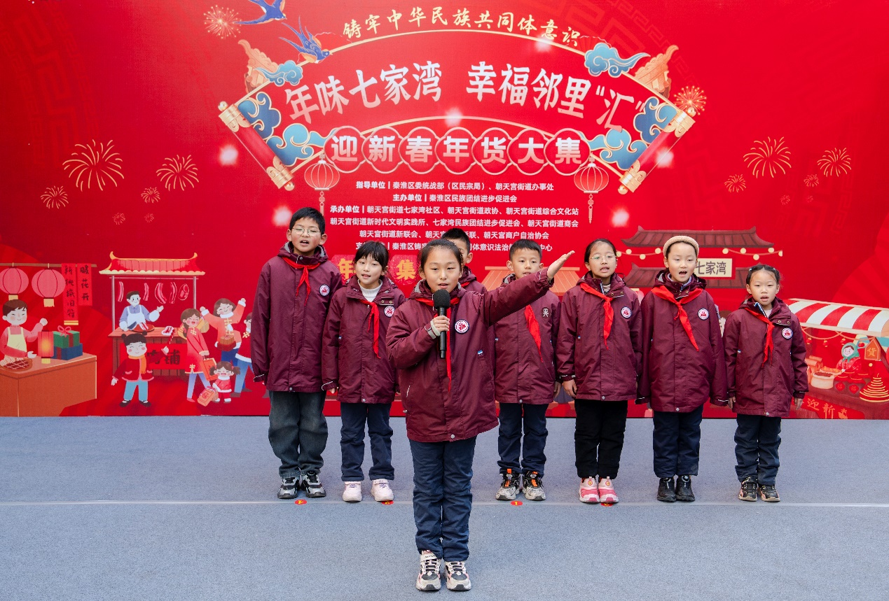 居民们自编自导自演的文艺节目《元日》古诗词昆曲、越剧版《秦淮灯彩》、歌曲《航向》等,给活动现场的来宾们带来了一场精彩的文化盛宴。朝天宫民族小学的孩子们带来原创歌曲《航向》,展示了中华民族大家庭的温暖和力量。