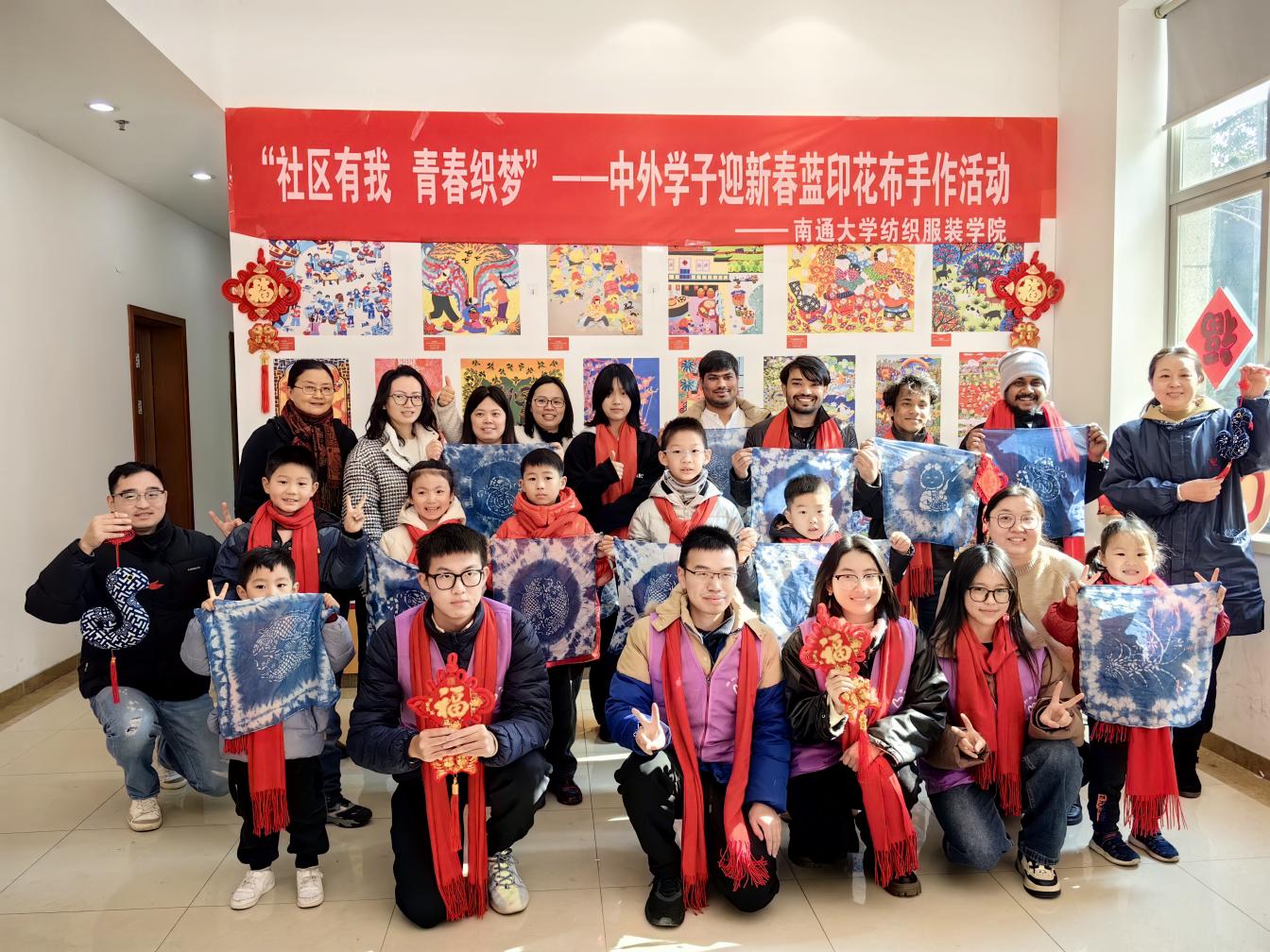 1月21日,由南通崇川经济开发区新时代文明实践所、二桥社区新时代文明实践站与南通大学纺织服装学院联合开展的“‘社区有我 青春织梦’——中外学子迎新春蓝印花布”手作活动在网格党群服务站热闹开展。