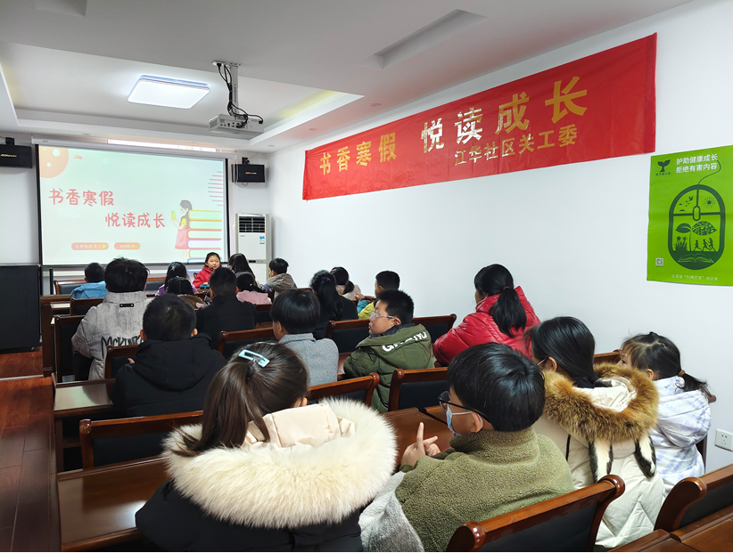 同日,江华社区开展了“书香寒假 悦读成长”的阅读分享会活动,让孩子们推荐分享自己喜欢的书籍。孩子们带着自己喜欢的书籍在家长的陪同下早早到达了现场,在小朋友们陆续入座后,由志愿者向大家分享了一本沈溪石的《海豚之歌》作为本次读书分享会的开端,随后孩子们轮流向大家介绍自己喜欢的书籍,并分享了读书过程中的感悟与心得。其中韩牧野小朋友分享的《中国大运河》与蔡沐云分享的《西游记》受到了众多小朋友的喜爱。家长们纷纷表示,通过此次活动,孩子们了解到了更多的书籍,也激发了孩子们的阅读学习兴趣。