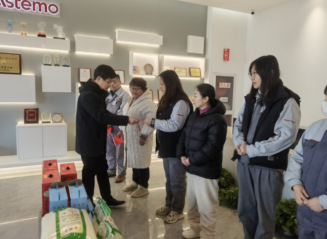 在日立安斯泰莫动力系统(南京)有限公司,区政协副主席、开发区管委会主任赵久峰与困难党员、困难职工交谈,了解他们的身体状况以及面临的实际困难,同时嘱咐他们要注意防寒保暖和生活生产安全,并为他们送上新春祝福。