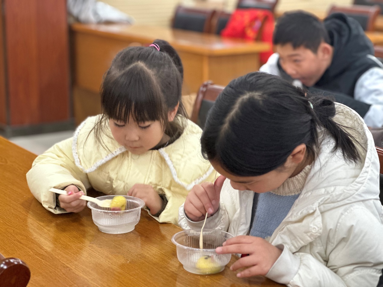 科普结束后,热气腾腾的元宵被陆续端上桌,瞬间让整个活动现场的气氛高涨起来。元宵香甜可口,馅料回味无穷。村民们围坐在一起,一边品尝着美食,一边分享着节日的喜悦,欢声笑语充满了整个场地,氛围温馨而和谐。大家在享受美食的同时,也感受到了邻里之间的浓浓情谊,仿佛一家人围坐在一起,共度美好时光。