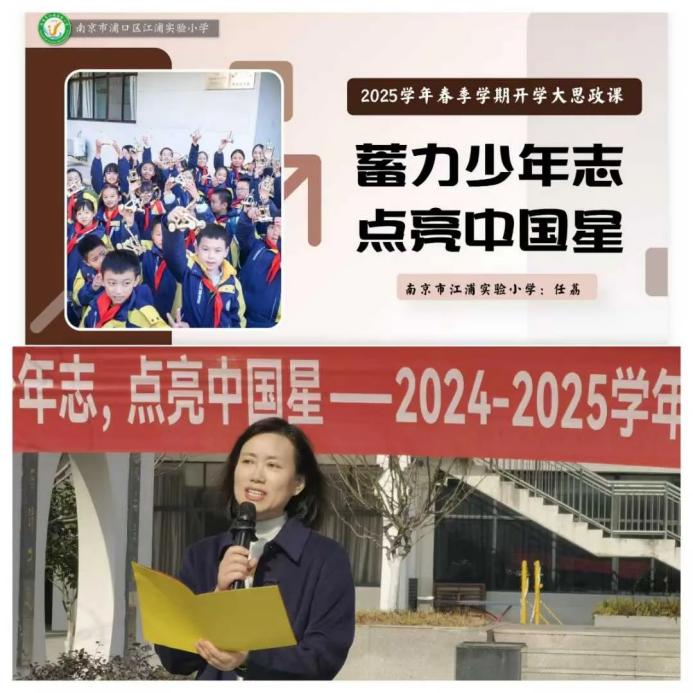 江浦实验小学党支部书记、校长任荔以“蓄力少年志,点亮中国星”为主题,通过三个维度向师生家长阐述了新时代的教育使命与成长方向。
