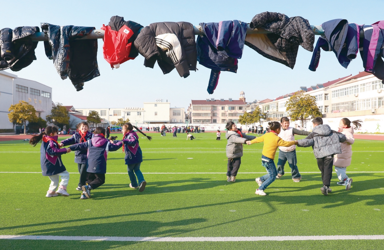 昨天上午,北漍中心小学的学生们课间休息时间在操场上尽情玩耍。新学期开始后,我市不少中小学校优化了课间活动的时间安排,延长课间时间,鼓励学生走出教室、锻炼身体,尽情享受运动带来的乐趣。(黄惠刚 陶庆 图/文)