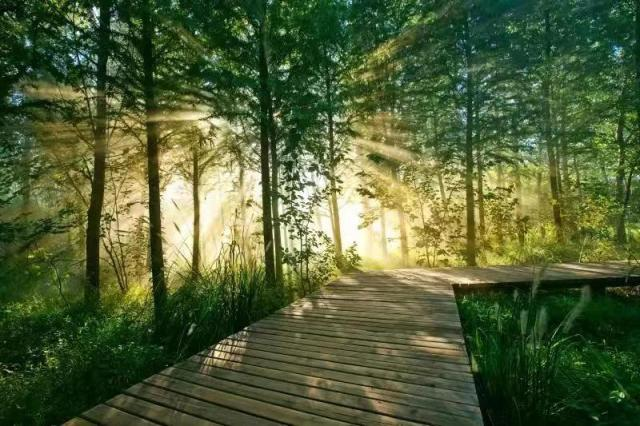 溱湖湿地公园的杉林下,二月兰正悄然铺就“紫色地毯”,漫步木栈道,仿佛踏入莫奈的油画。垂丝海棠缀满枝头,粉白花瓣随风轻颤,与古色古香的亭台水榭构成一幅中式写意画。