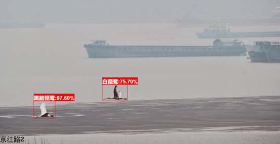 清晨,薄雾笼罩江面,镇江市焦北滩湿地,一台搭载AI识别系统的高清摄像机悄然转动。当晨光中掠过一群长着琵琶状扁嘴的黑脸精灵时,监测终端立即触发预警信号——这是今春首次造访的国家一级保护野生动物—黑脸琵鹭,全球仅存6000余只的“鸟中大熊猫”。