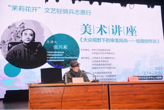 3月14日,海安市文化艺术中心内洋溢着欢声笑语,省文联“茉莉花开”文艺轻骑兵志愿行系列活动在这里启幕。展览开幕、美术讲座、苍龙舞辅导、广场舞辅导……丰富多彩的文艺活动和高品质的文化供给,让海安群众共享文艺之美。