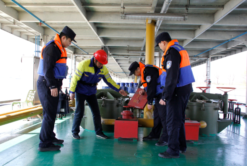 为深入推进安全生产风险隐患大排查活动,近日,长航公安局南京分局栖霞派出所结合平安长江2025专项行动,连续组织警力对辖区涉危涉爆港航企业开展安全生产风险隐患大排查和消防安全检查,着力消除涉水易燃易爆场所(单位)安全生产隐患,全力护航长江水运经济发展。