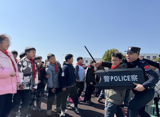 演练结束后,边检民警充分利用操场的开阔空地,设置了一个丰富多样的防暴器械展示讲解区域。此外,针对校园可能遇到的各类危险场景,民警们还通过列举真实案例、情景再现等方式,生动地为师生们普及应急逃生和自我保护知识。