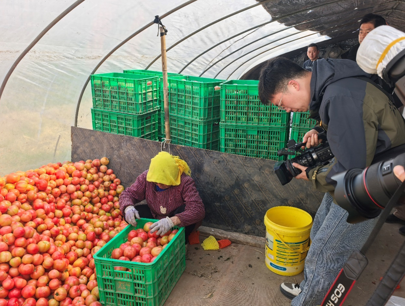 目前,该村番茄已陆续上市。为进一步提高“红富堡”番茄品牌的知名度与产品竞争力,推进线上、线下产销衔接,3月20日,兴化市农业农村局与多家媒体机构、网上销售人员来到番茄大棚里,开展互动宣传。
