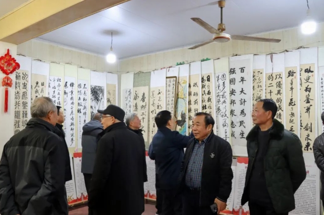 活动前,在大邹镇新时代文明实践所书画展示区,老干部们频频驻足,欣赏每一幅作品,品味其中含义,交流探讨书法作品的艺术造诣和文化内涵,深刻感受书法作品背后所蕴含的深厚家国情怀和文化自信。
