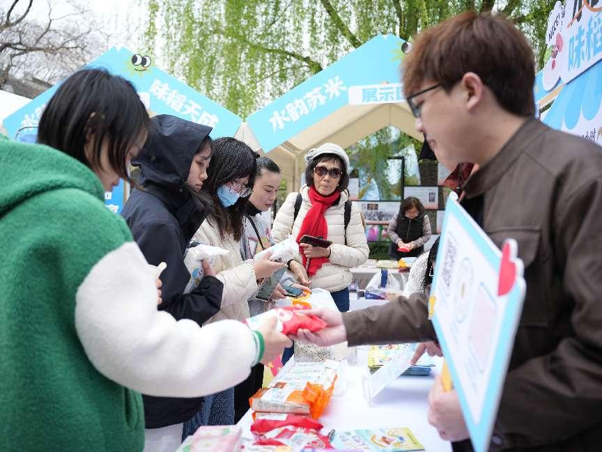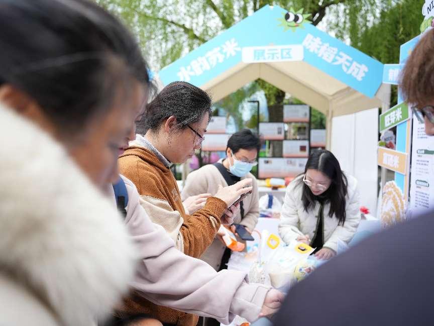 活动现场人潮涌动。在品鉴区,市民们品尝了南粳46、南粳9108、苏垦1号等苏米核心品种的大米,赞不绝口。“这大米真香啊,还没开锅我就闻到香味了!”一位市民说。而米浆咖啡的展位前也围满了好奇的市民,大家品尝后纷纷表示要购买米浆回家尝试。在互动知识问答环节,市民们积极参与,不仅学到了关于大米的知识,还有机会获得精美礼品。优品展销区则汇聚了众多“水韵苏米”领军企业的优质产品,供市民选购。