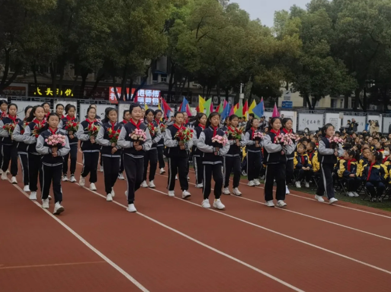 36名鲜花队队员步伐整齐、朝气蓬勃,他们手捧鲜花,既为致敬辛勤耕耘的教师,亦为礼赞奋勇拼搏的运动健儿,传递着最真挚的祝福与敬意。