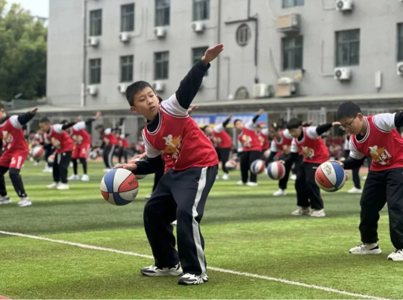 江浦实验小学和江浦实小滨江分校共创的《绿茵跃动·活力实小》,既是艺术体操与篮球操的碰撞,也是科技与运动的交响!看,红绸如星河铺展,五角星闪耀国防之光!