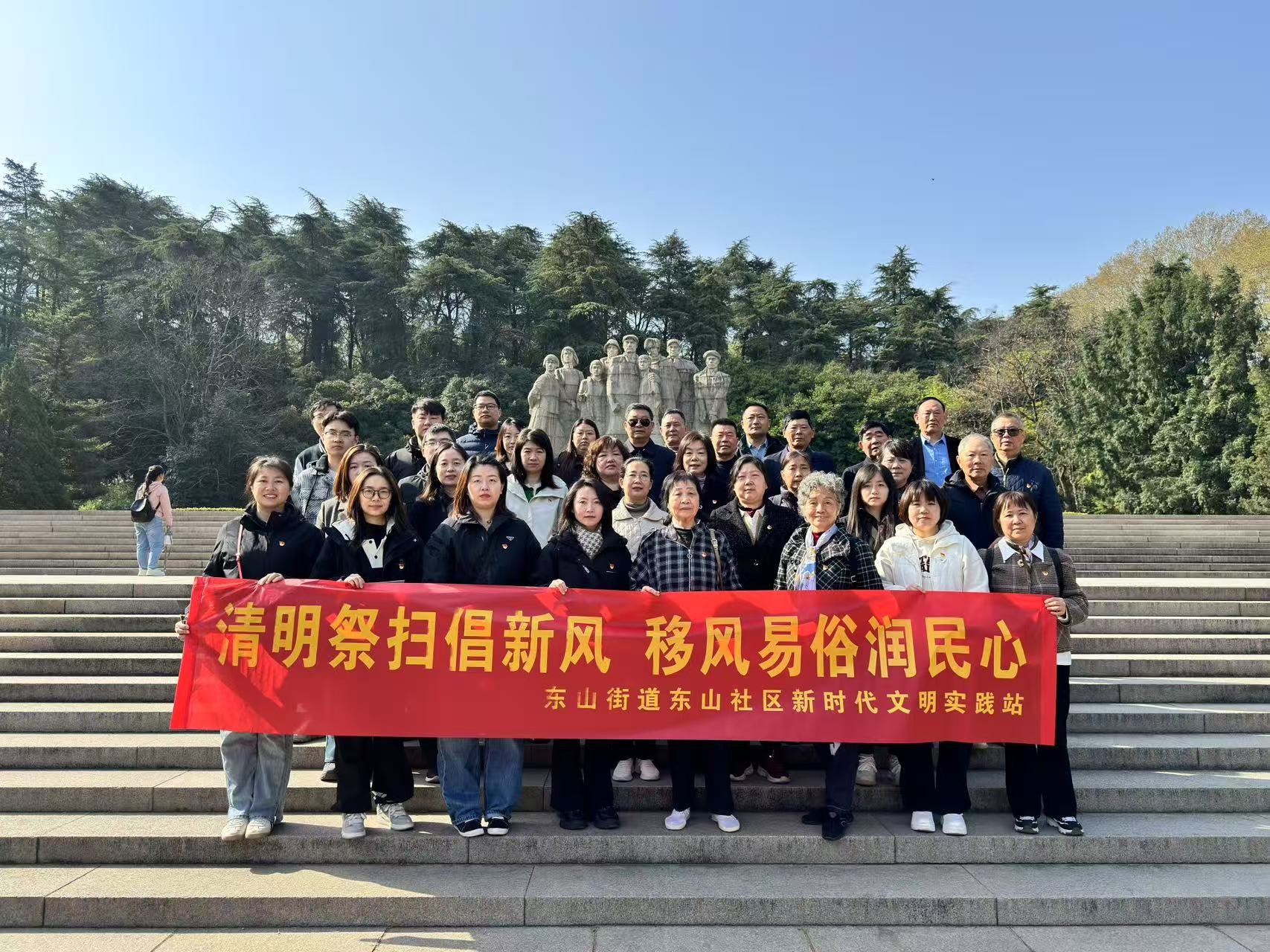 4月1日,南京市江宁区东山街道东山社区组织了社区内的党员、老党员及居民群众前往南京市雨花台烈士陵园,开展了一次以“清明祭扫倡新风,移风易俗润民心”为主题的学习活动。