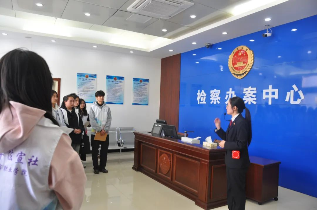 在检察院团支部青年干警的带领下,大学生们打卡了12309检察服务中心、检察办案区,讯问室、询问室、调解室、听证室、安检等候区……每到一处,干警都详细讲解了功能室的用途以及检察官的相关职责。