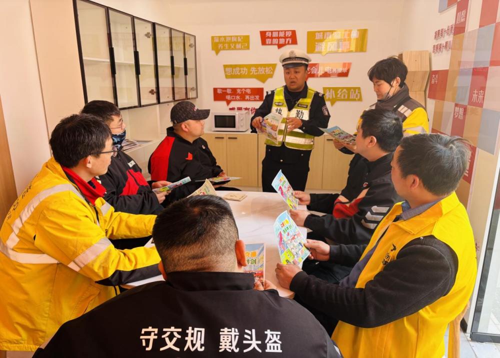 凝新课堂,安全护航成长路。“左转时要注意视觉盲区,夜间骑行必须开启警示灯。”城北中队交警正通过情景模拟,为骑手们定制交通安全课程。针对外卖行业特点,交警结合典型案例解析逆行、抢灯等安全隐患,现场演示头盔正确佩戴方法。在知识竞答环节,“骑行途中接单如何确保安全”“突发情况应急处置”等实用问题引发热烈讨论,推动安全意识入脑入心。