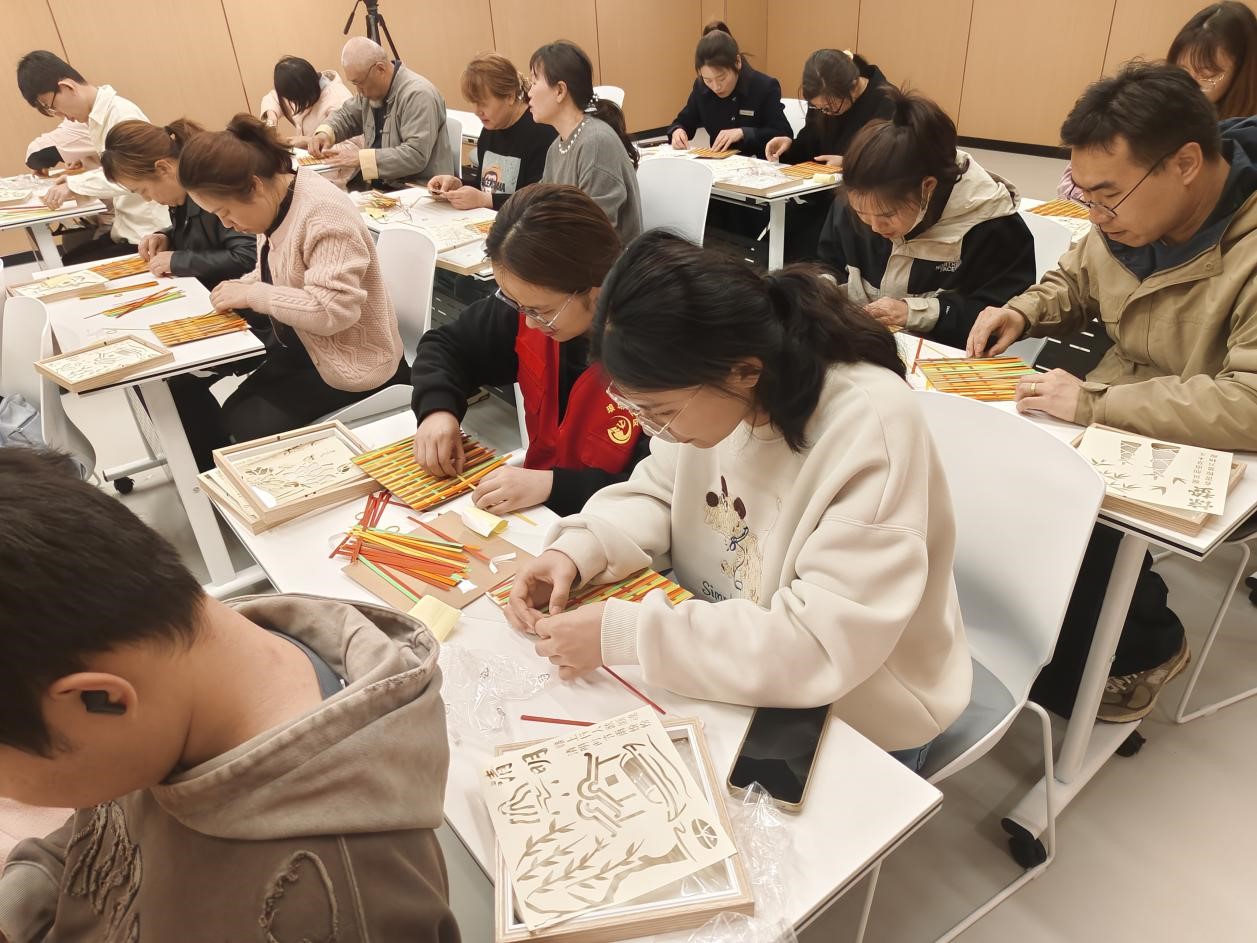 活动现场,志愿者首先结合清明节气特征,向居民们科普了清明时节农事指导的智慧,以及清明节祭祖追思的文化内涵。随后,志愿者系统讲解了竹编画的历史渊源与编织技法,通过投影演示“压一挑一”的经纬编织手法,帮助参与者直观掌握制作要领。