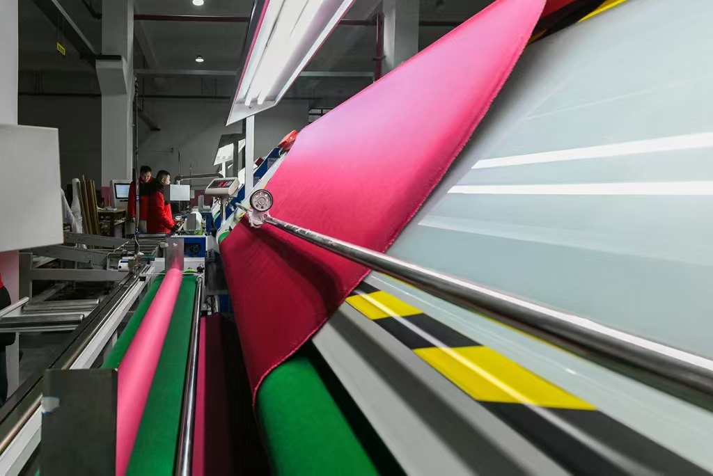走进生产车间,机器的轰鸣声交织成一首忙碌的交响曲。工人们穿梭在一排排高速运转的设备间,眼神专注,动作娴熟,丝毫没有被嘈杂的环境所干扰。他们正全力以赴赶制一批即将发往非洲的订单,每一个细节都力求做到完美。在拉幅定型区,一卷卷印染好的布料被精准地输送到设备上,经过高温定型后,变得平整挺括,鲜艳的色彩在灯光下格外夺目。一旁的检验区,质检员们手持检测工具,仔细检查着每一米布料的质量,不放过任何一处瑕疵。“这段时间大家都鼓足了干劲,订单多,我们就加班加点干,争取按时把货物交付到客户手中。”有着多年工作经验的熟练工张师傅一边熟练地操作着机器,一边笑着说道。他介绍,为了完成这批紧急订单,车间里不少工人主动放弃了休息时间,自愿加班。这种拼搏精神在整个公司蔚然成风,成为推动生产快速发展的强大动力。
