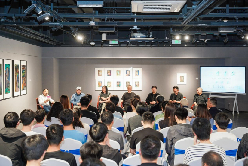 当天下午,一场学术分享会在雨花美术馆一号展厅举行。分享会由雨花美术馆馆长、本次展览的策展人李文钢主持。中央美院教授、院学术委员会委员、壁画系第四工作室主任武艺,诗人、艺术批评家朱朱,南京书画院院长、金陵美术馆馆长刘春杰,评论家、策展人郑闻,南京艺术学院美术馆副馆长、策展人林书传,诗人、小说家刘立杆共同担任分享会嘉宾,与到场观众一同开启一场艺术与人文的精彩思辨。