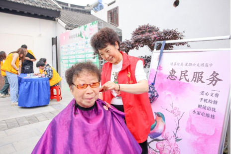“社保可以通过微信小程序缴纳,我来教您”……在政策宣传区,来自靖江市公安局、医保局、人社局、住房公积金管理中心的志愿者主动向大家宣传各类最新政策,解答他们提出的问题。惠民服务区的志愿者们也忙得不可开交,他们热情地为市民群众提供爱心义剪、小家电维修、眼镜清洗等服务。“我是一名理发店店主,也是靖城街道江华社区的志愿者,今天特地参与到活动中来为居民们提供免费理发服务。”志愿者顾建兰说。