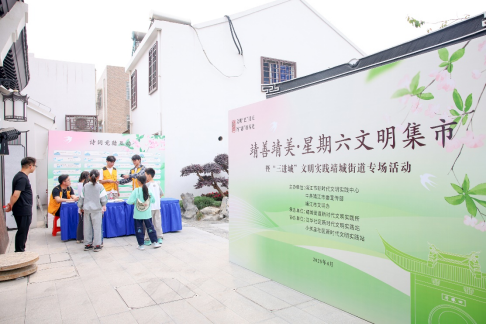 4月19日下午,江苏省靖江市靖城街道观海门文明实践街区人潮涌动,“文明‘巳’月天 约‘惠’好春光”——“靖善靖美·星期六文明集市”暨“三进城”文明实践靖城街道专场活动正在这里举办。此次活动既是该市“星期六文明集市”进中心(所、站)活动之一,也拉开了该市“三进城”文明实践活动的序幕。