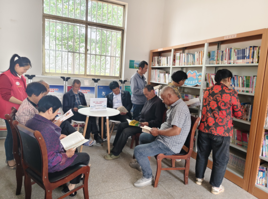 活动期间,临海镇充分依托新时代文明实践所(站)、农家书屋等文化阵地,有序开展阅读分享会、经典诵读、文化讲座等多元活动。在活动现场,志愿者为老人们量身定制了一份专属的“银发书单”。从《中国通史》中探寻历史的脉络,到《健康养生指南》里学习实用的保健知识,再到《平凡的世界》感受文学的魅力,每一本书都承载着知识与温暖,满足了老人们多样化的阅读需求。老人们在书架前挑选自己喜欢的书籍,有的静坐翻阅,有的低声交流着彼此的读书心得和生活感悟,沉浸在书香之中。