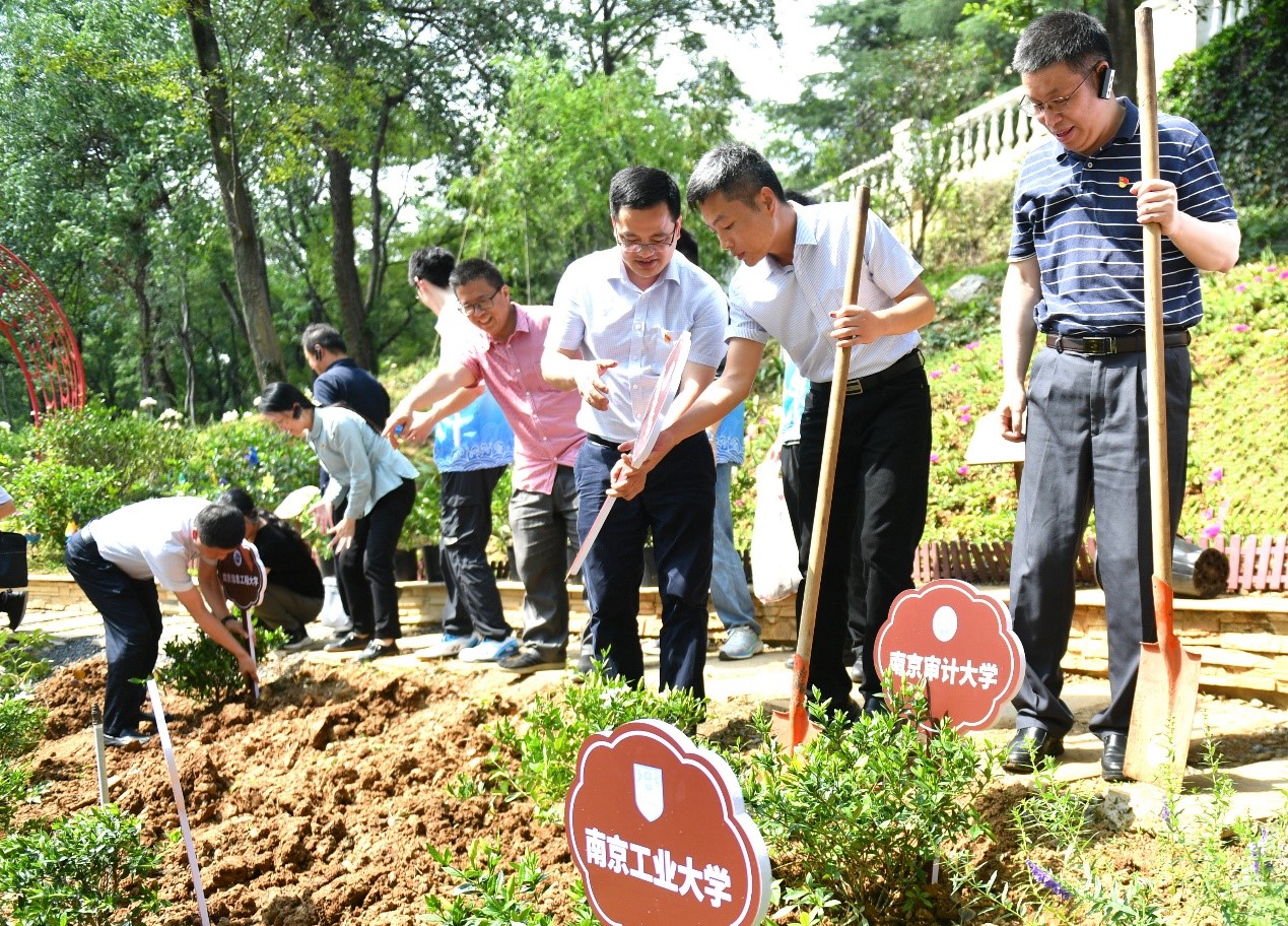 活动中,全体与会人员在南京工业大学春风化雨志愿团带领下,参观了南工大镜湖廉洁文化教育长廊、清廉浦园广场,并在三莲药苑集体种下了栀子花,激励自身持续涵养“持节清廉甘淡泊”的忠诚品格。