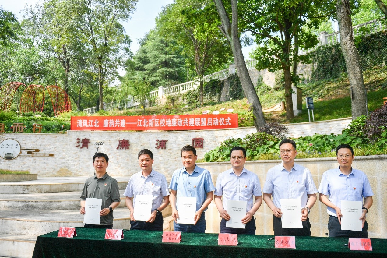 5月20日,在江北新区纪检监察工委的倡议下,南京农业大学、南京信息工程大学、南京审计大学、江苏警官学院、南京工业大学五所高校纪委共同签署共建合作协议,围绕纪检监察干部教育培训、学科建设、反腐协作、廉洁文化建设等领域开展深度合作,正式开启校地协同推进全域清廉建设的新篇章。