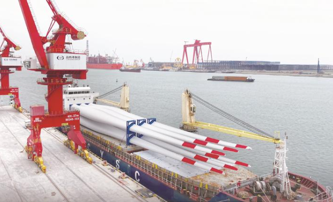 27日,6片大型V156型风电叶片在中外运吕四港重装码头,搭载巴拿马籍货轮“长雄”号启航运往越南。这标志着该码头成功实现风电叶片这一新货种的首次出口。中外运吕四港重装码头是南通地区首个定位重装运输的公共码头。本次风电叶片成功首航,不仅丰富了重装码头的货种结构,更强化了我市“风电装备制造—港口物流—海外运维”的全链条优势。(吴霄云 彭玉章 王军凯)