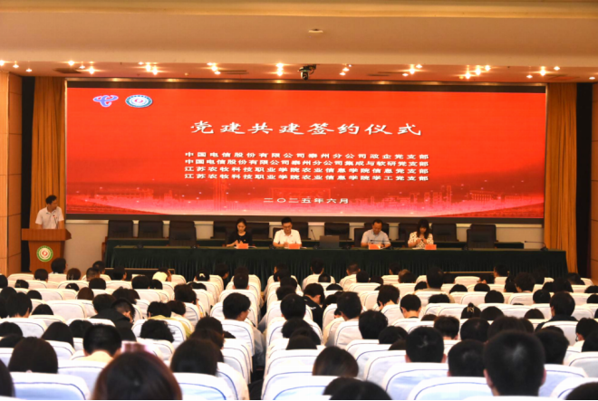 活动现场,中国电信泰州分公司政企党支部、集成与软研党支部与江苏农牧科技职业学院农业信息学院信息党支部、学工党支部签署党建共建协议。未来,双方党支部将以“组织联建、活动联办、资源联享”为路径,在人才培养的沃土上精耕细作,在技术创新的高地中勇攀高峰,构建起“优势互补、协同发展”的党建新格局,让红色基因成为校企合作的鲜明底色。