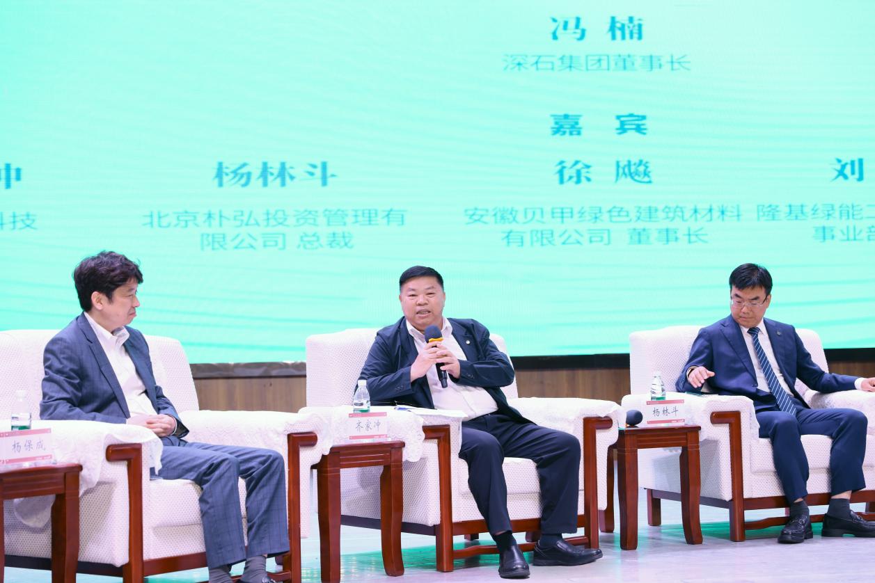 在“绿色发展的可持续性探索”圆桌对话环节,齐家冲与宁德时代区域总经理魏莹、隆基绿能工业与公共事业部总裁刘通、安徽贝甲绿色董事长徐飚、北京朴弘投资总裁杨林斗、无锡城建发展副总裁徐劲、黄河科技学院校长杨保成展开了深入的思维碰撞。