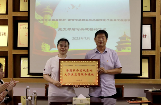 为夯实合作基础,实践团先赴江苏农林职业技术学院“天之翼”无人机工作室交流学习,通过实地观摩专业设备、探讨技术应用案例,筑牢科技服务乡村的技术根基。随后,实践团奔赴句容市天王镇唐陵村,与村方举行党建共建签约仪式,签署共建协议书并为“暑期社会实践基地”“大学生志愿服务基地”揭牌。