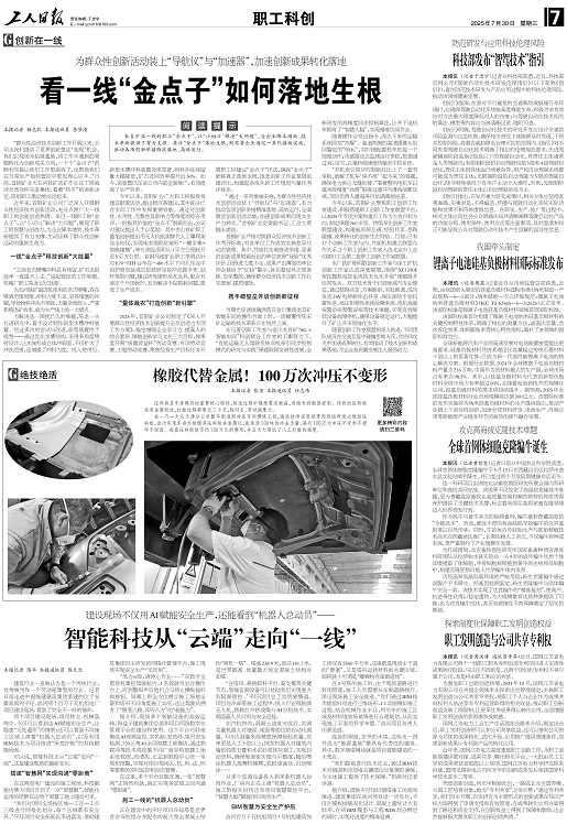 凭借创新创造,何光华脱颖而出,一路成长为全国劳模、大国工匠培育对象,她为“专利共享”之举点赞:“通过专利共享,我们自主开展、自发研究为主要形式的创新成果在知识产权方面得到了申请支持和有效管理,在成果转化应用方面得到了路径和资金支持,在创新收益上得到了保障和激励,这必然能够极大激发职工的创新创造热情。”(黄洪涛 章岑)