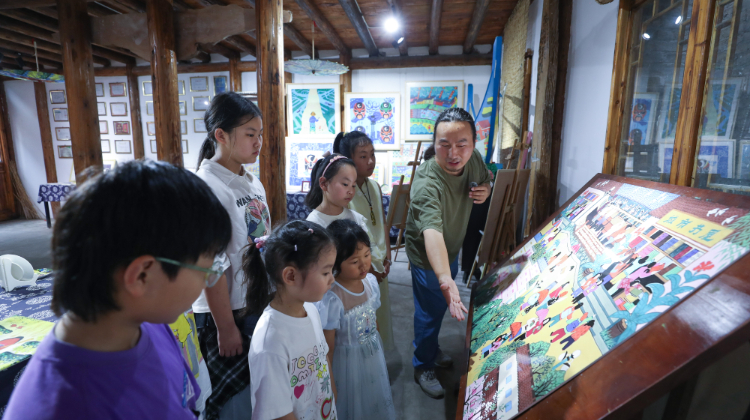 7月27日,江苏泰州兴化市“走读兴化 寻路非遗”特色阅读推广活动走进垛上农民画非遗工坊,活动以“品读兴化垛田农民画,触摸泥土里长出的艺术”为主题,通过沉浸式体验与互动创作,让孩子们近距离感受非遗的魅力,推动垛田农民画传承与全民阅读有机融合。