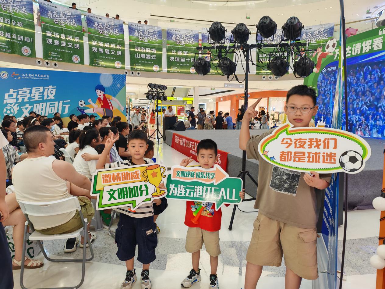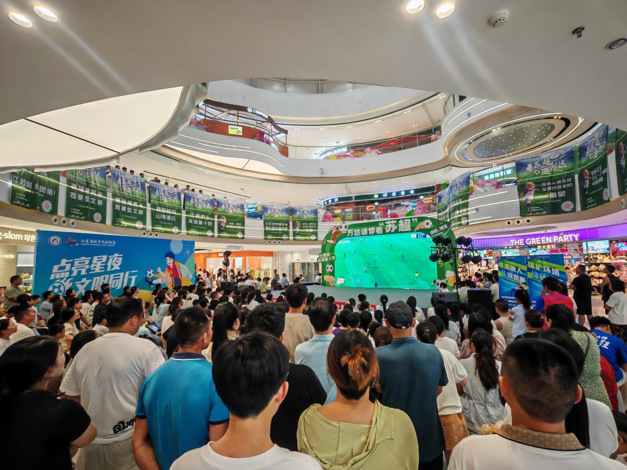 8月3日晚,灌云县新时代文明实践中心与万达广场文明实践点内灯火通明,呐喊助威与欢呼阵阵此起彼伏。一场融合文明实践与足球激情的观赛活动火热举行,共同为“苏超”连云港队对阵泰州队的精彩对决加油喝彩,为夏夜注入别样活力。
