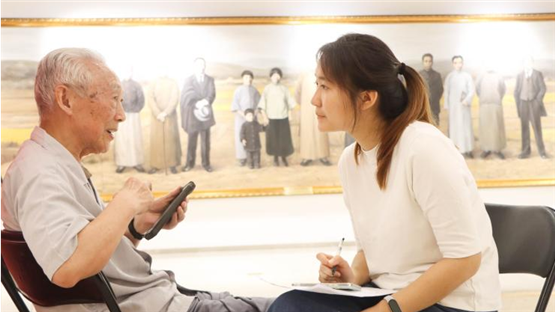 宣讲结束后,调研团成员开展“一对一”访谈。访谈中,92岁高龄的居民张成和老人表示,这份沉痛的记忆,让他对抗日将士的爱国情怀有了刻骨铭心的理解。2014年,他毅然将积攒的10万元退休金捐赠给南京晓庄学院附属小学。调研团成员还向附近商户发放问卷,搜集宣传抗战精神方面的建议。