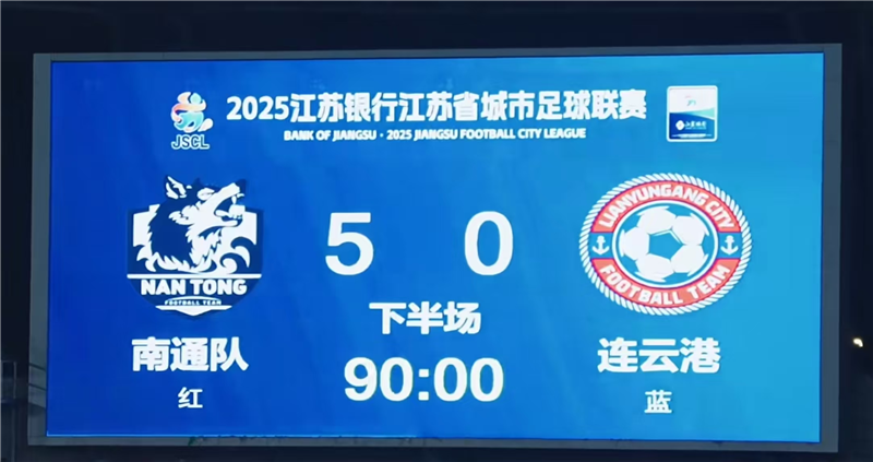“苏超”赛事八连胜!南通队5:0战胜连云港队