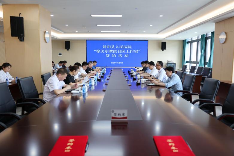 9月7日,盐城市射阳县人民医院“徐美东教授名医工作室”签约活动在医院D区15楼第三会议室举行。上海市东方医院副院长、消化内科及消化内镜中心主任徐美东教授,东方医院业务发展部主任王贤喜,消化内镜科副主任陈涛教授、副主任医师徐勤伟教授、副主任医师张海斌教授一行出席活动。射阳县人民政府副县长夏斯馨出席并致辞,射阳县卫健委党委书记、主任邹其凯主持活动。射阳县人民医院领导班子及相关科室负责人共同参加。