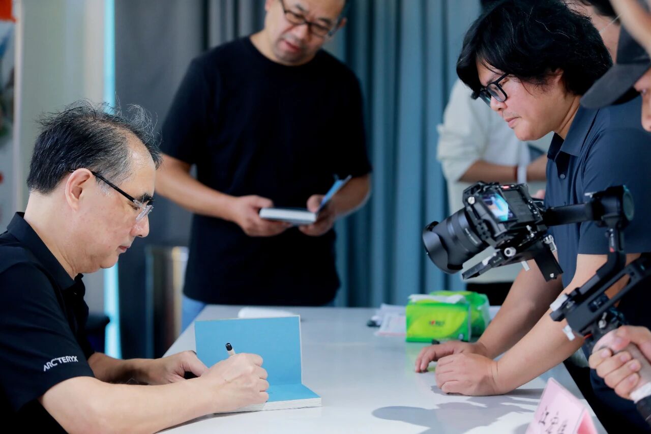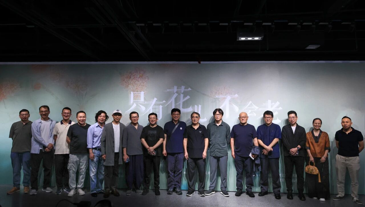 展厅内,观众驻足作品前,沉浸于细腻朦胧、动静相生的花鸟世界中。江宏伟在现场为观众签赠展览同名随笔集《只有花儿不会老》,以笔墨传递一份跨越时空的艺术温情。
