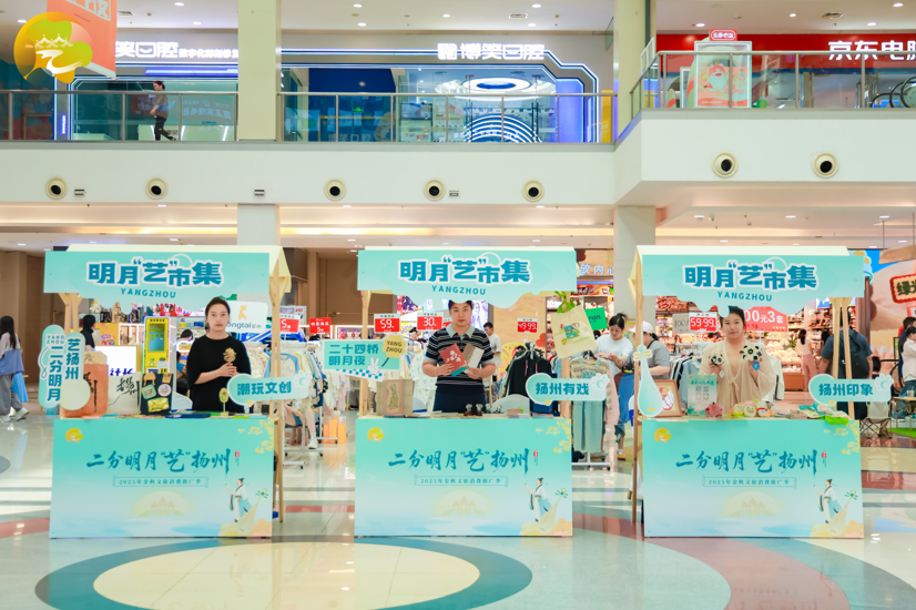 在游戏环节观众们热情高涨,“嫦娥奔月”环节观众化身“嫦娥”指尖揽月;更有“趣味足球”互动,邀请现场观众参与踢足球游戏,感受苏超赛事激情。除了趣味十足的互动游戏,现场“明月‘艺’市集”活动同样精彩纷呈:广陵手绘地图、渔文化文创、非遗剪纸及“冒险团子”毛绒玩具等多款蕴含扬州元素的文创产品,让扬州的历史与文化变得可触、可感、可收藏。