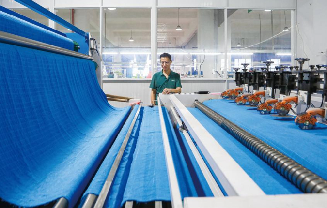 江苏荣鸿新纤维科技有限公司总经理徐福广说:“今年上半年我们公司实现销售额10亿元,生产销售一直很红火,目前我们在手的订单已经排到11月份,今年我们争取实现15亿元的销售。”科技创新是企业的核心竞争力。公司一直致力于超细纤维行业的全流程、专业化、现代化、规模化生产,引进处于国内领先水平智能设备,不断改良生产工艺。目前,该公司已经形成经编织造、圆机织造、裁剪包装全链条生产格局,正逐步实现数字化生产,建立数字化车间,在现有的规模下实现高效高质节能绿色生产。