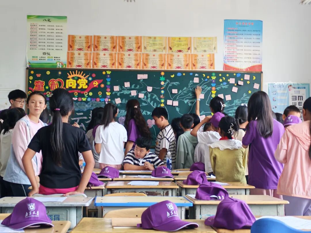 “敦行”乡村夏令营以“教育+陪伴”为双重定位,支教不仅是教学,更是陪伴与倾听。每一节课,都是一次心与心的对话;每一个笑容,都是教育最真实的回响。在商镇中学,老师们在鼓励中发现了一个女孩在绘画课上展现出的惊人天赋;在妥甸初中,孩子们在“方言传声筒”游戏中笑声不断,在推普朗读中认真庄重;在湘河镇中心小学,孩子们把心愿卡贴满“心愿树”,写下美好的梦想……